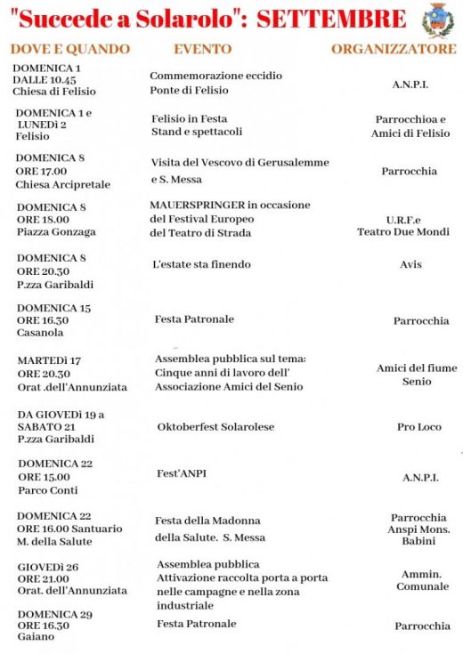 Notizie su Solarolo: eventi, novità, avvisi comunali, programmi di feste, informazioni utili e articoli su Solarolo.