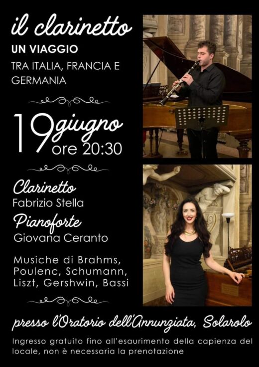 Musiche di Brahms, Poulenc, Schumann, Liszt, Gershwin, Bassi. Ore 20.30 presso l’Oratorio dell’Annunziata. Ingresso gratuito fino ad esaurimento capienza.